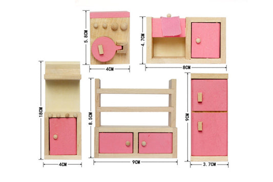 Dollhouse Furniture - Kitchen Set (B) and 3 Dolls