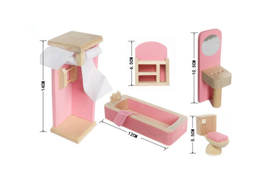 Dollhouse Furniture - Bathroom Set (B) and 3 Dolls