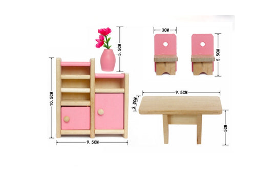 Dollhouse Furniture Pink Bundle - 6 Room Sets and 8 Dolls