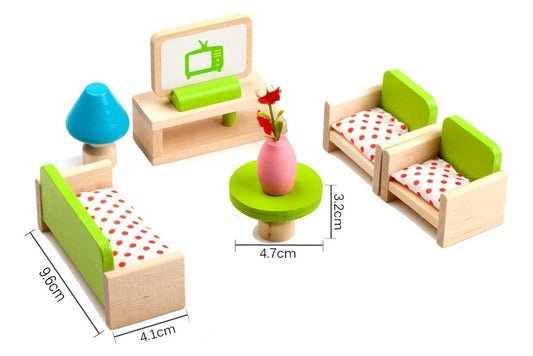 Green Living Room Set, 3 Dolls & PDF Language Exercise Cards