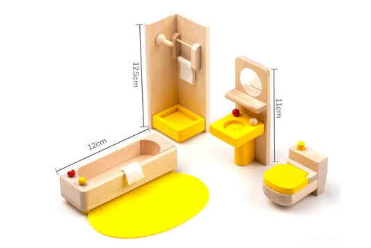 Yellow Bathroom Set, 3 Dolls & PDF Language Exercise Cards