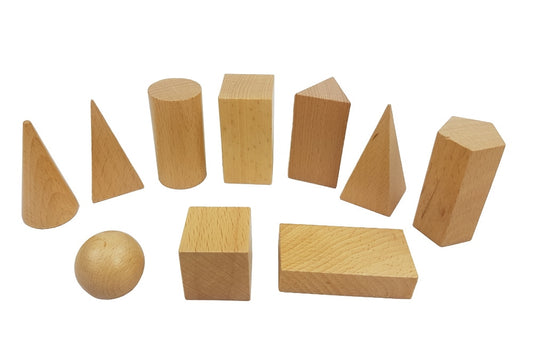 10 Wood Geometric Solids and PDF 3-Part Cards