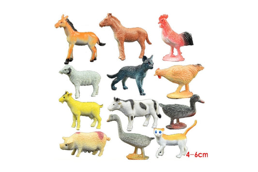 12 Farm Animal Models with 2-Compartment Tray and Printed Cards