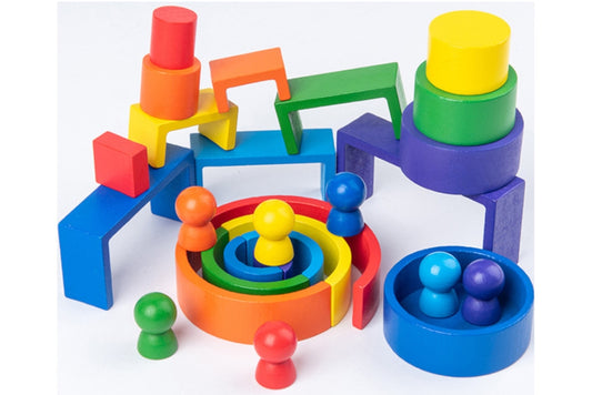 Assorted Tray of Wooden Stacker and Mandala Loose Parts