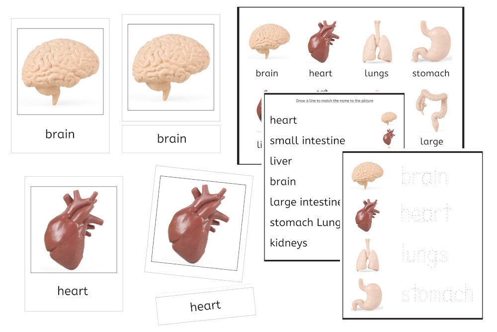 8 Human Organs 3-Part Cards and Worksheets (PDF)