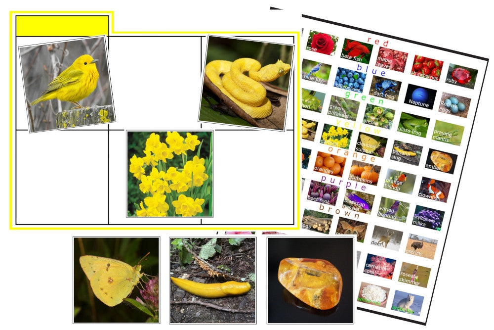 This sorting activity includes 9 colour coded sorting mats, each with 6 objects to match with. It is an excellent activity in preschoolers' or homeschoolers' sensory and language study.