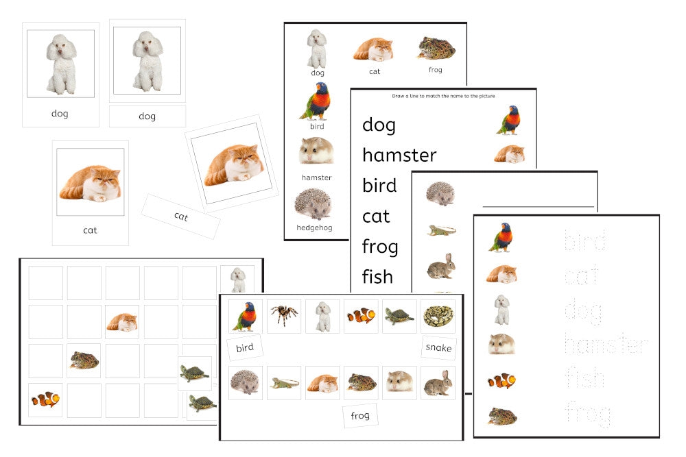 This downloadable PDF set includes 3-part cards for 12 pets and 5 activities for practising object identification and vocabulary.