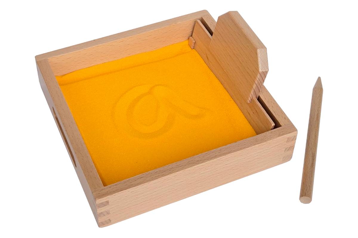 Tracing on sand helps the child practice writing by developing confidence in forming letters and numbers in freehand style.