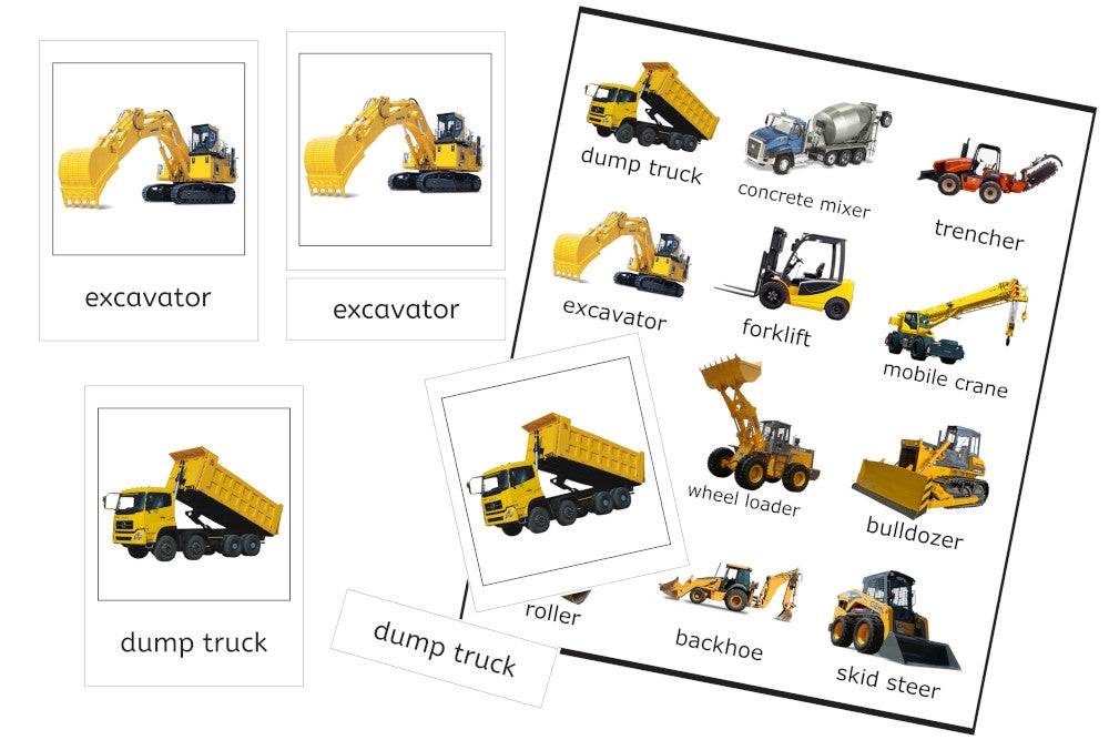 This set includes downloadable PDF 3-part cards for 12 types of truck.